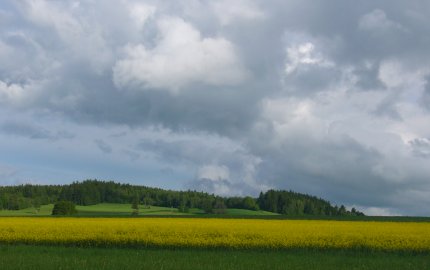 Oblaka na Vysočině jsou nejkrásnější. Jsou tak zvláštně, jakoby nízko, jako kdyby si na ně mohl člověk sáhnout. Plastické a obrazotvorné. Zvláště v srpnu, když zlátne obilí a jeřabiny se červenají, jako ve znaku našeho Kraje.